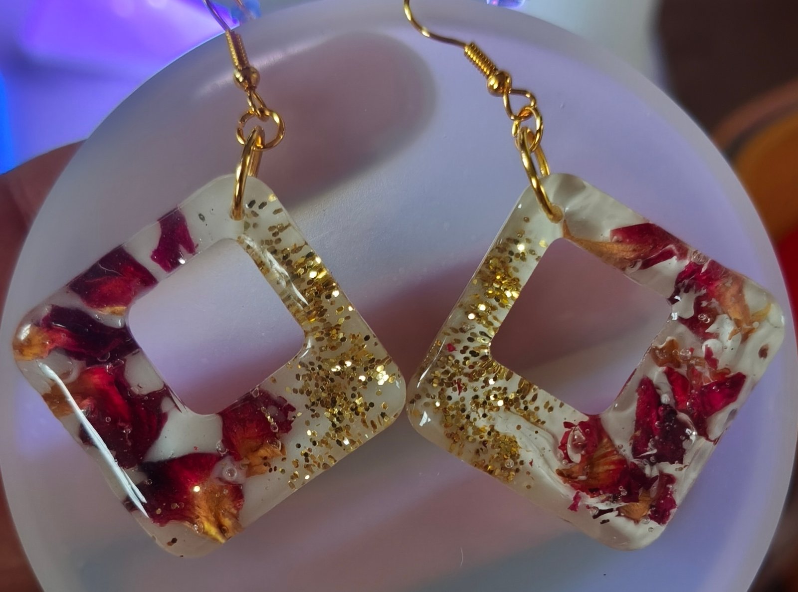 Fabriquées à partir de résine époxy de haute qualité, ces boucles d’oreilles allient durabilité et légèreté. Leur finition lisse et brillante apporte un éclat subtil qui attire l’attention sans être trop prononcé.