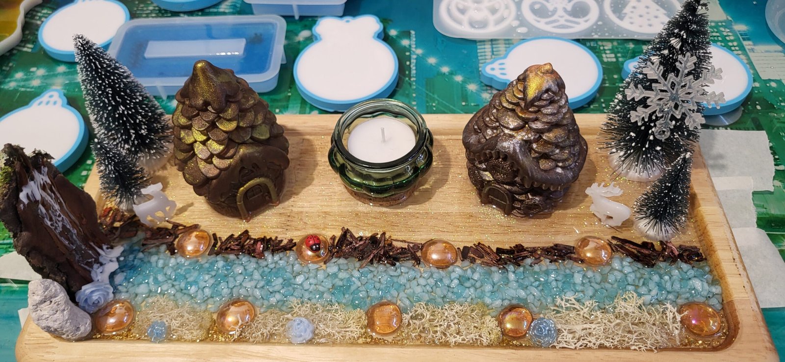 Ce centre de table bougeoir en bois et résine présente un design universel, idéal pour toutes les occasions. Utilisez-le comme pièce maîtresse lors des dîners, des célébrations ou simplement pour rehausser l’ambiance de votre maison. La combinaison unique des matériaux en fait un objet à la fois esthétique et fonctionnel, qui complète facilement les décorations saisonnières, minimalistes ou luxueuses.
