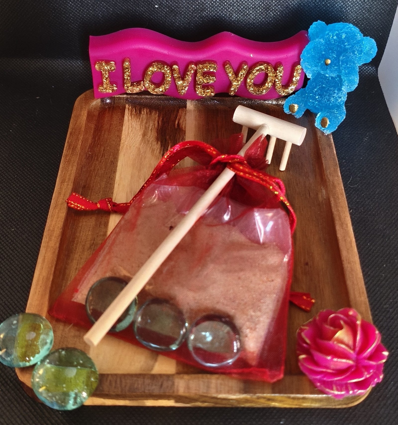 Laissez-vous séduire par l’élégance intemporelle de notre jardin zen en bois et résine époxy ourson. Conçu avec des matériaux de haute qualité, ce jardin miniature combine l’esthétique du bois naturel avec la modernité et la finesse de la résine époxy transparente. La figurine ourson, délicatement intégrée dans le design, ajoute une touche de charme et de douceur à l’ensemble. Que ce soit pour votre bureau, votre salon ou votre espace de méditation, ce jardin zen est le complément parfait pour instaurer une ambiance calme et harmonieuse.